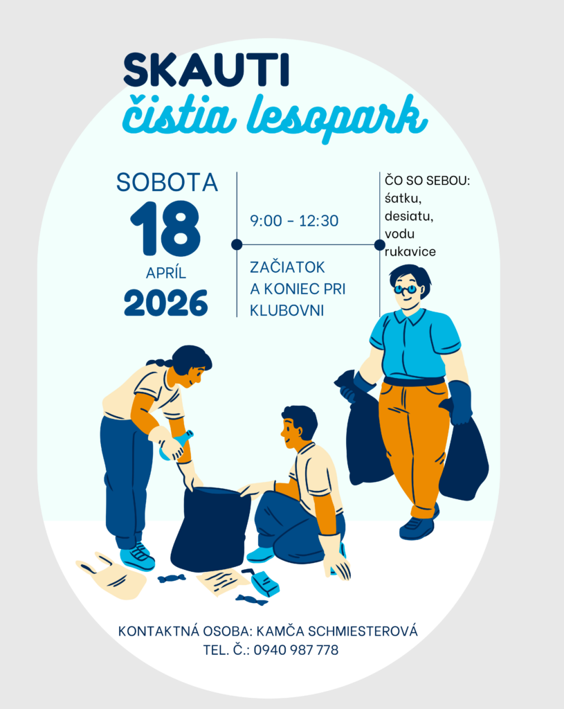 V apríli sa uskutočnia 2 super zborové akcie. 18.4.2026 budeme ako skauti spolu upratovať Lesopark a 24. – 26.4.2026 sa stretneme spolu na klasickej Jurajovskej chate. Pozvánky na obe akcie nájdete tu:
